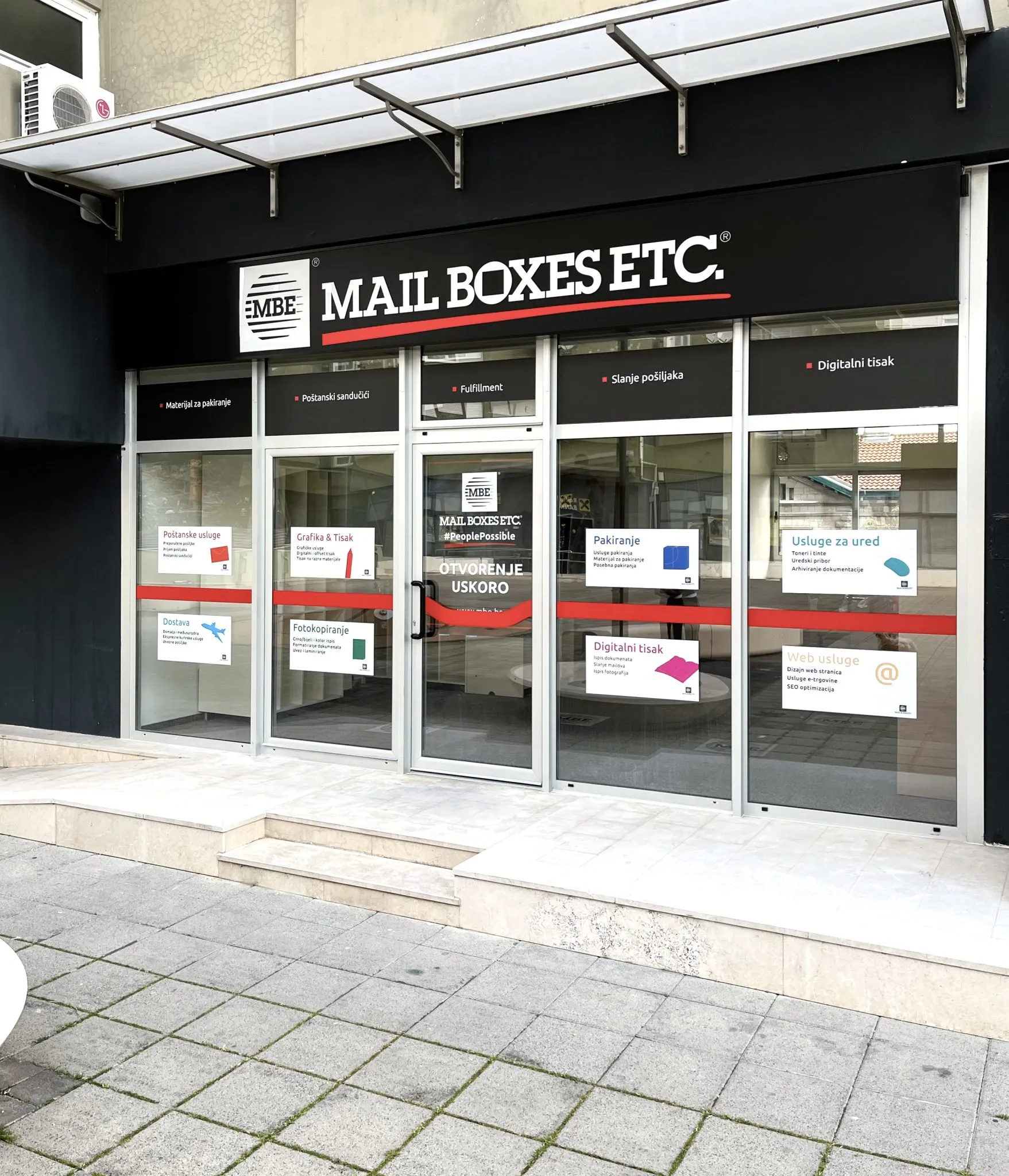 Mail Boxes Etc./MBE centri posluju putem neovisnih operatera kao franšize, koji posluju na temelju ugovora o franšizi pod robnom markom MBE. Kroz svoju mrežu franšiza, Mail Boxes Etc. pruža usluge podrške za poduzeća i pojedince. Logističke i usluge otpreme predstavljaju glavne usluge MBE – omogućene putem ugovora koje MBE sklapa za korist svojih franšizera s glavnim domaćim i međunarodnim ekspresnim kuririma – te druge grafičke i tiskarske usluge – pružene izravno ili na temelju ugovora s velikim tiskarskim centrima. Promocija usluga za poslovne i privatne korisnike provodi se u okviru poslovne aktivnosti svakog MBE franšiznog partnera unutar i izvan MBE centara ("farming"). Svaki franšizni partner ugovorno je obvezan obavljati takve aktivnosti. Mail Boxes Etc. i MBE registrirani su zaštitni znakovi koji se koriste uz dopuštenje Fortidia – registrirani zaštitni znak MBE Worldwide S.p.A – (Sva prava pridržana). Usluge koje nude pojedini MBE centri mogu se razlikovati ovisno o lokaciji. Materijali dostupni na ovoj internetskoj stranici, informacije sadržane ovdje i svi drugi relevantni podaci ni na koji se način ne smiju kopirati, distribuirati, mijenjati, ponovno objavljivati, reproducirati, preuzimati ili prosljeđivati trećim stranama bez izričitog prethodnog pismenog odobrenja tvrtke Sistema Italia 93 S.r.l. Ne preuzimamo nikakvu odgovornost u vezi s neovlaštenim korištenjem materijala dostupnog na ovoj internetskoj stranici, informacija i/ili podataka sadržanih u njima.